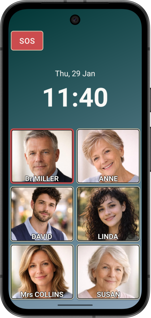 Contact images help users recognise people instantly without relying on reading or memory, which is especially valuable for users with declining eyesight or cognitive challenges. Seeing a familiar face reduces hesitation and lowers the risk of calling the wrong person.