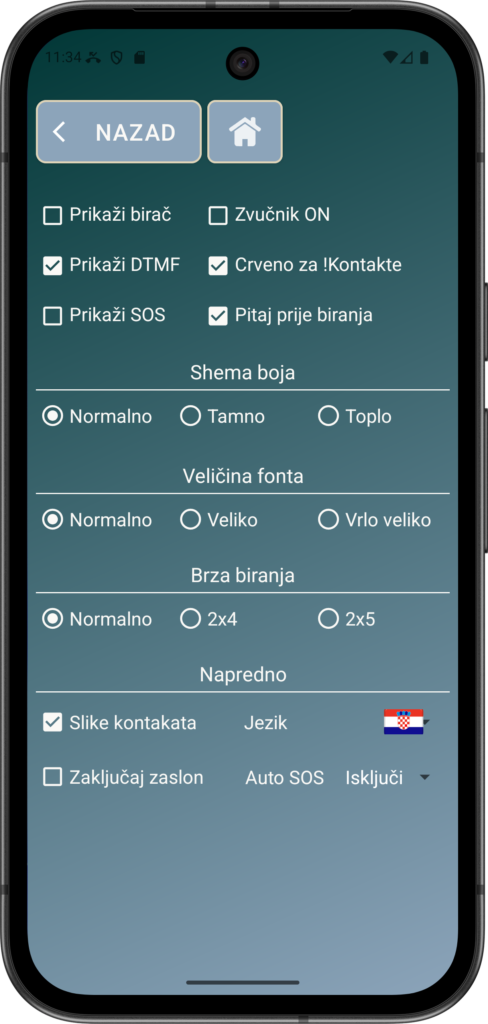 The ability to change the language ensures the app can be used comfortably in the user’s preferred or native language, helping reduce confusion and making instructions, labels, and prompts easier to understand. This is particularly important for users who may not be confident reading a second language or who feel more at ease communicating in their mother tongue. From a practical perspective, multilingual support also allows carers and families across different countries and cultures to configure the app appropriately, making Elder Dialler suitable for global use rather than being limited to a single region or demographic.