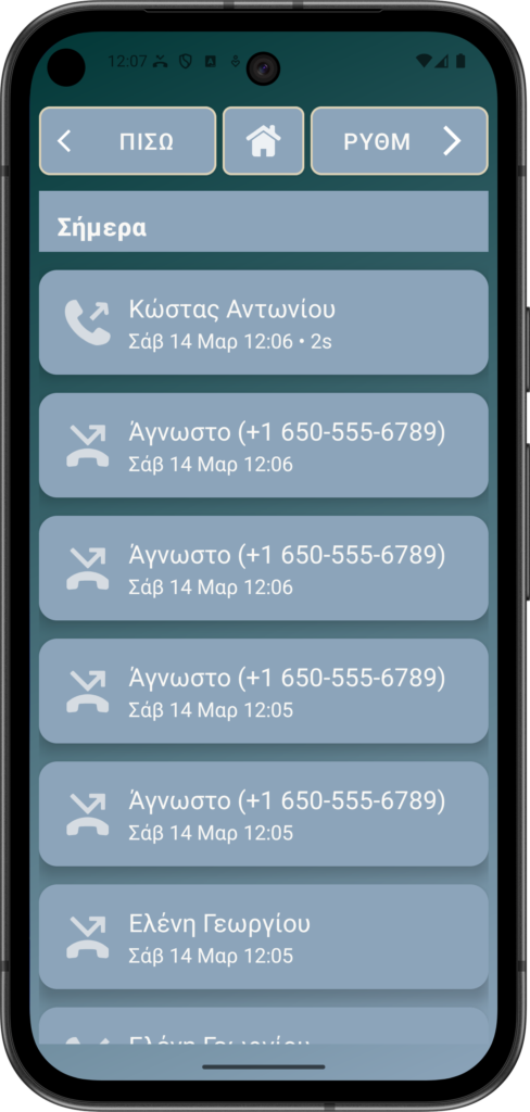- Για να δείτε το Ιστορικό κλήσεων, κάντε κλικ στην επιλογή ΕΠΑΦΕΣ από την Αρχική σελίδα