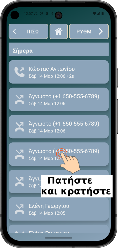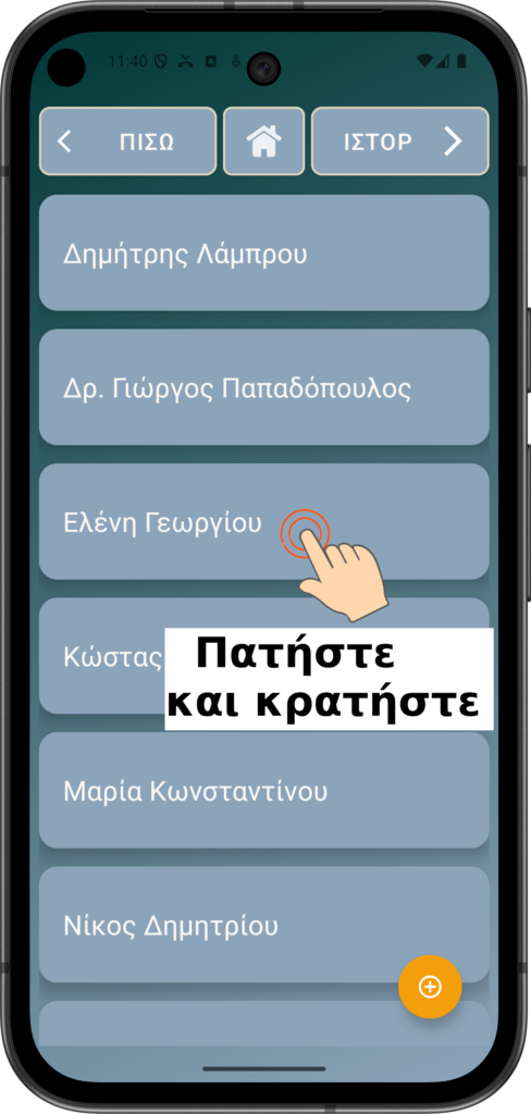 Πατήστε και κρατήστε ένα από τα ονόματα επαφών