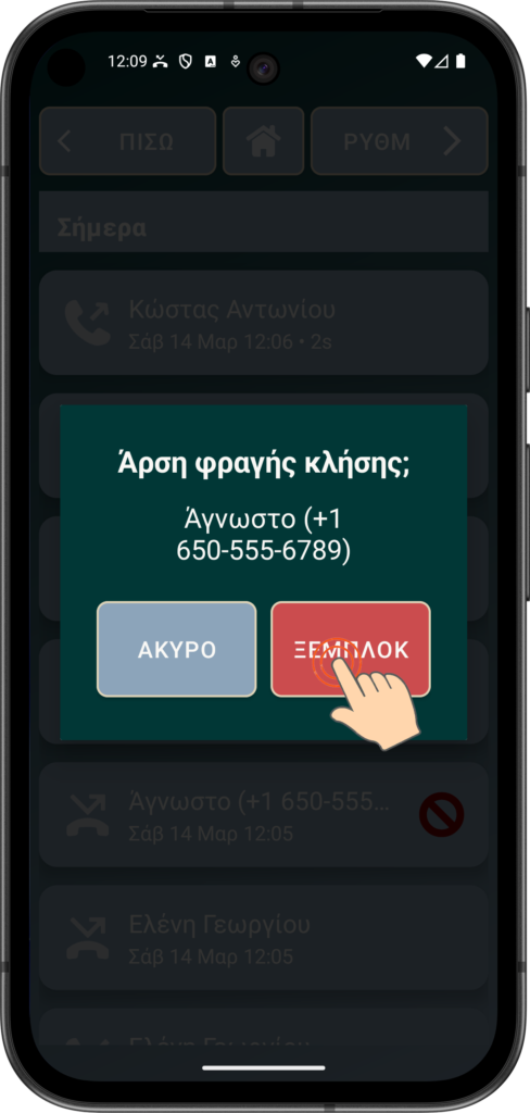 Χρησιμοποιώντας τη λίστα ΙΣΤΟΡ για να ΦΡΑΓΗ ανεπιθύμητους καλούντες