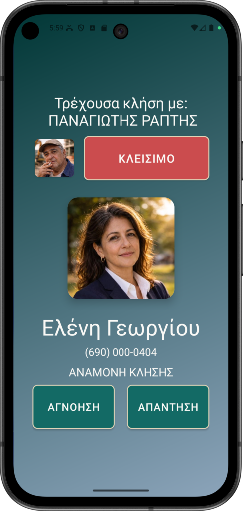 Για παράδειγμα, ο Ελένη προσπαθεί να σε καλέσει, αλλά ήδη μιλάς στο τηλέφωνο με την Παναγιώτης. Μπορείτε να πατήσετε: