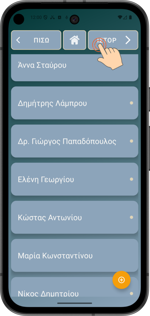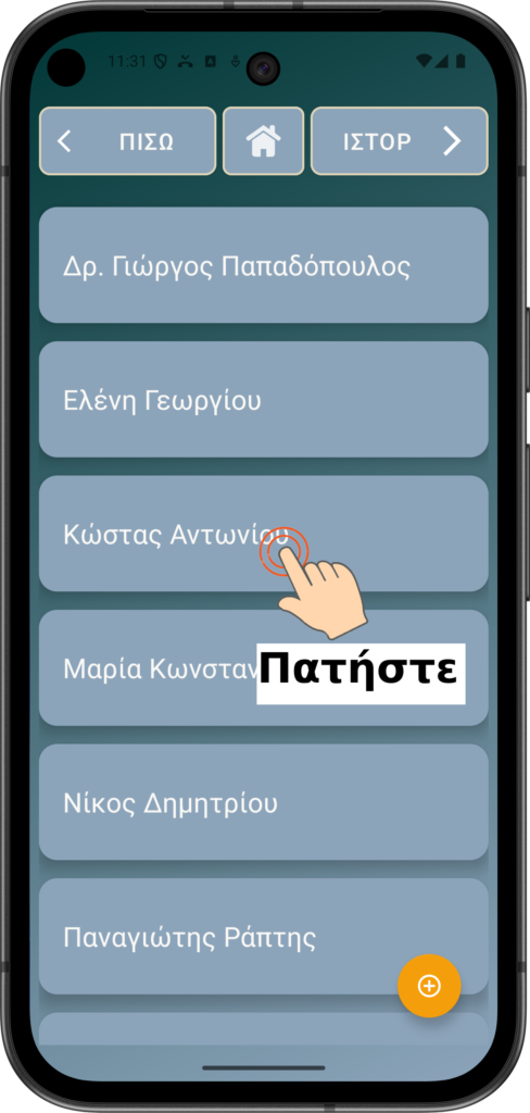 Σημείωση: Η λίστα επαφών σας θα είναι διαφορετική. Εάν δεν έχετε επαφές, τότε προσθέστε μία χρησιμοποιώντας το κίτρινο + κουμπί.
