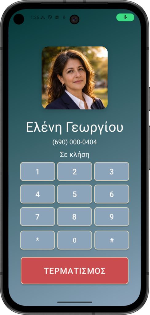 Εάν ενεργοποιηθεί το πληκτρολόγιο τόνου (DTMF) ή/και εικόνες, τότε το πληκτρολόγιο τόνου εμφανίζεται μαζί με τη φωτογραφία του καλούντος.