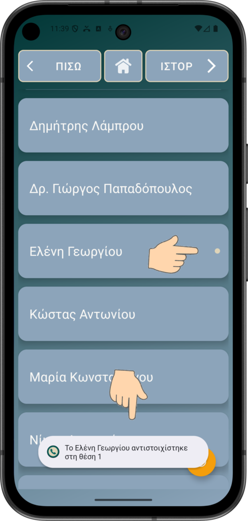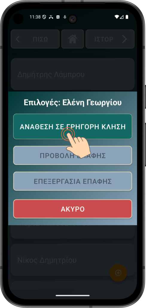 Επιλέξτε ΚΛΗΣΗ για να καλέσετε την επαφή (Κώστας Αντωνίου σε αυτή την περίπτωση)