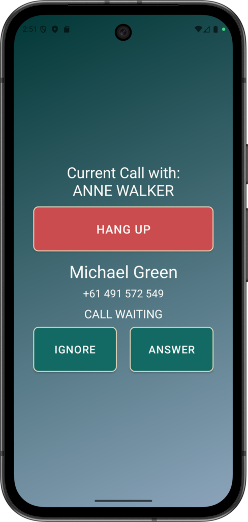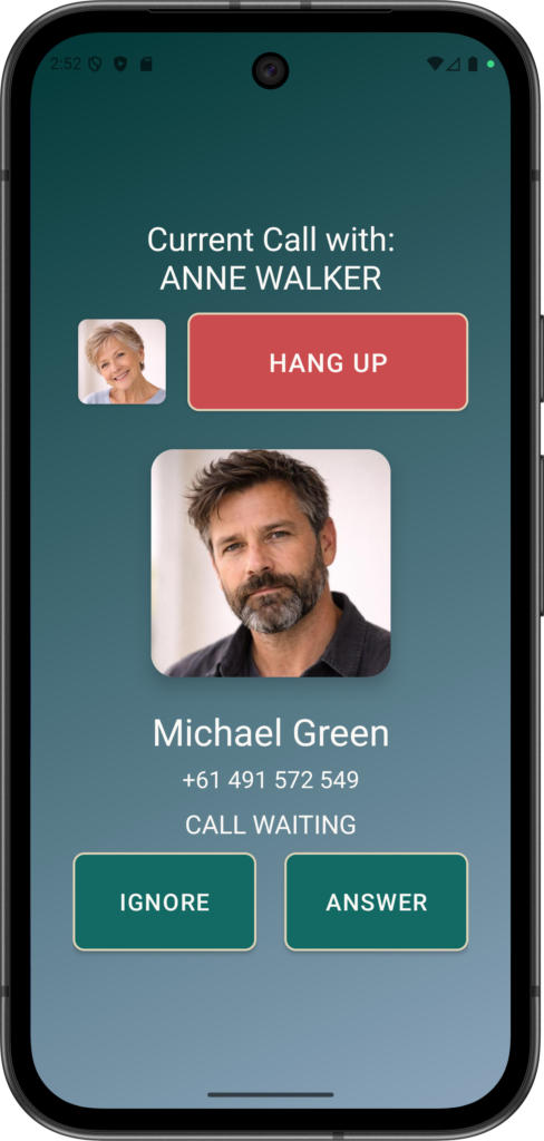 As an example, Michael is trying to call you, but you are already talking on the phone to Anne. You can press: