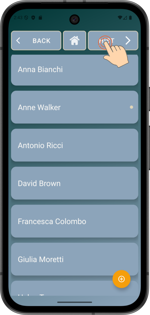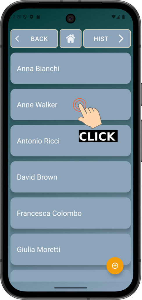 Note: Your Contacts list will be different. If you have NO contacts, then add one using the yellow + button.
