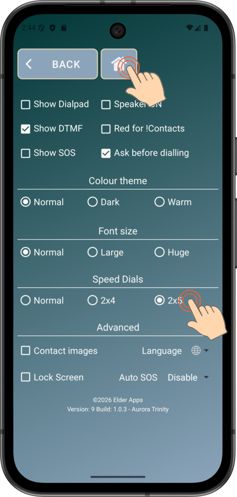 Note that you can also remove this permission at any time from the Settings menu (go to Settings -> Apps -> Default apps->Phone app), but this will negate all Elder Dialler benefits.