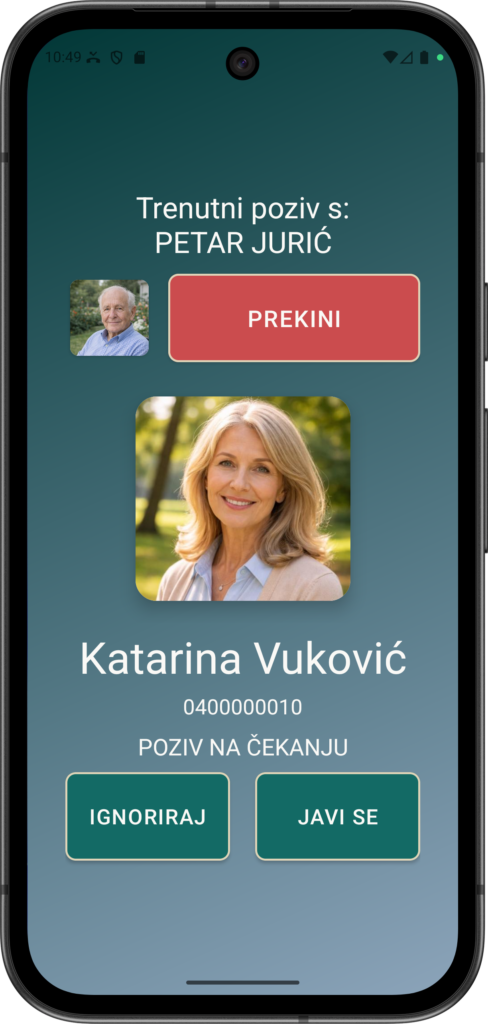 PREKINI – za prekid poziva s Petar i početak razgovora s Katarina.