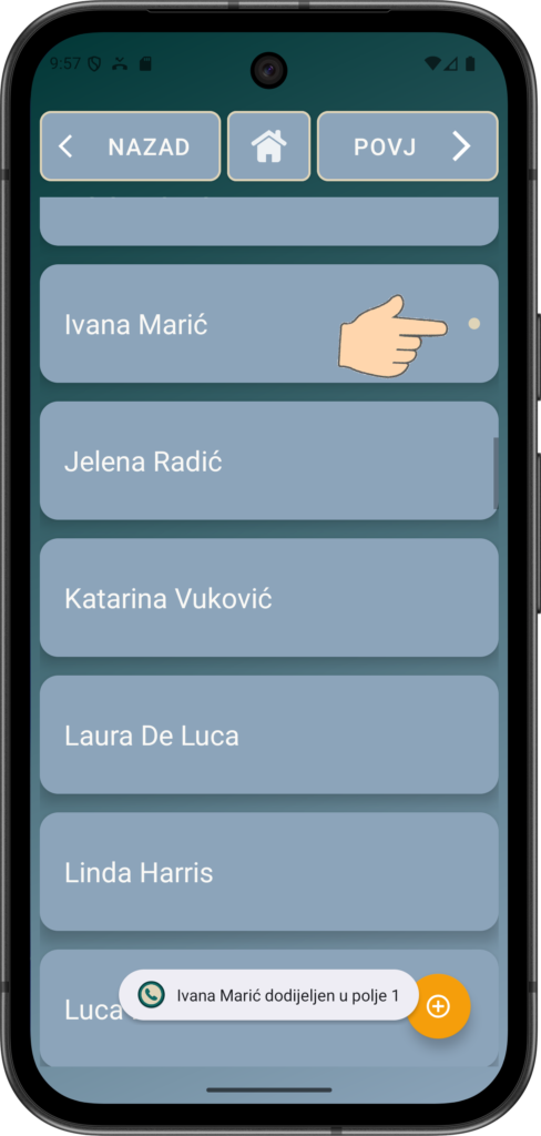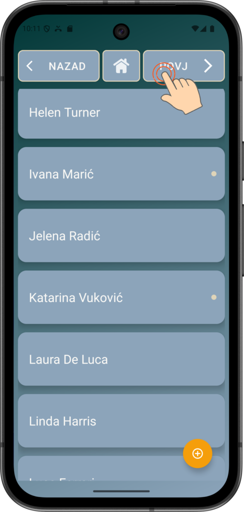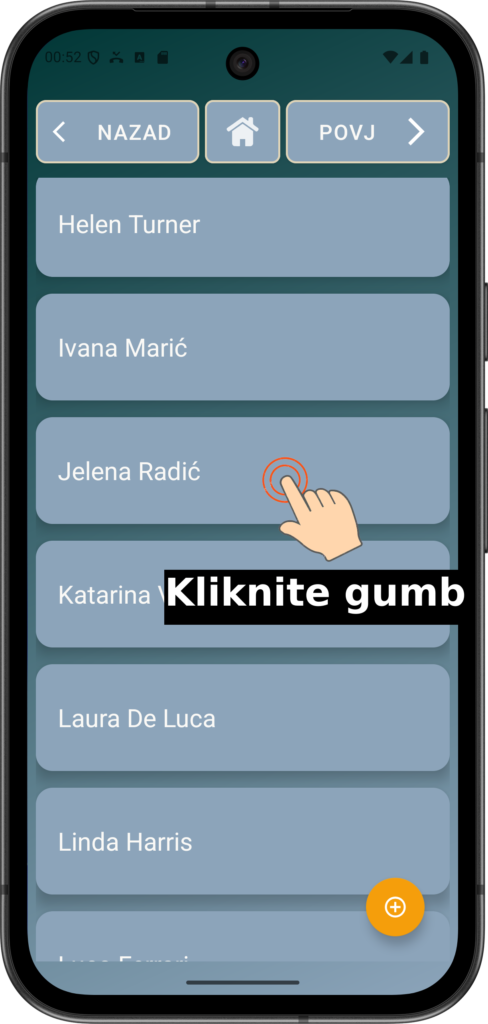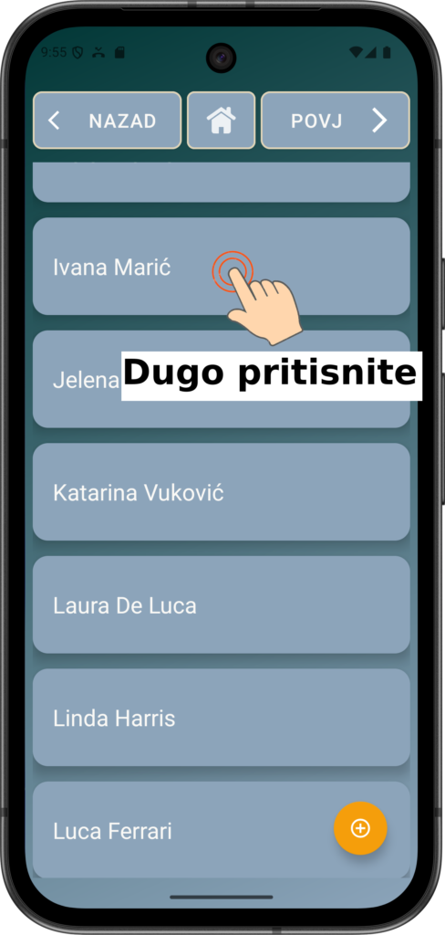 • Pomičite se kroz popis kontakata i kratko pritisnite bilo koje ime na popisu