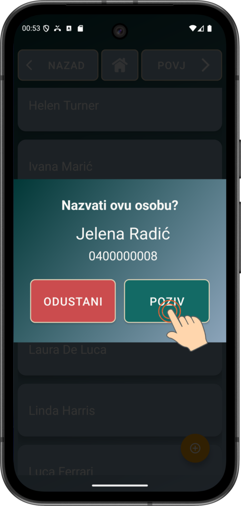 Odaberite ‘POZIV’ za pozivanje kontakta (Jelena Radić u ovom slučaju)