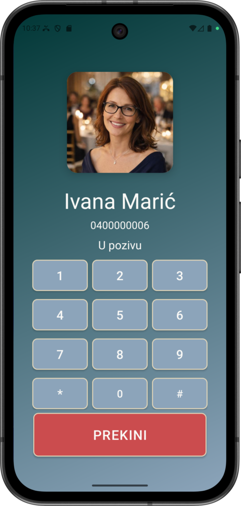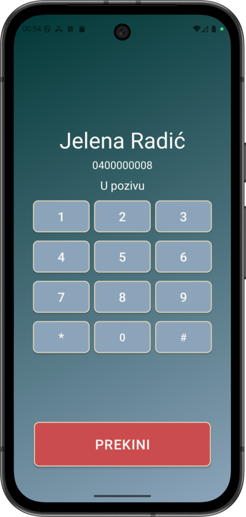Jelena se javila na poziv, razgovarali smo, a zatim možete prekinuti poziv klikom na PREKINI.