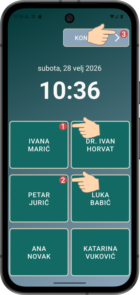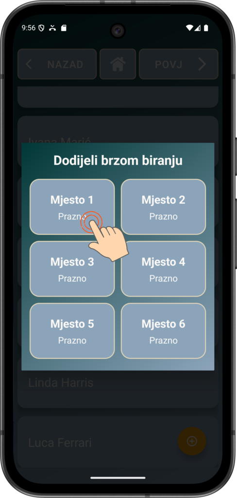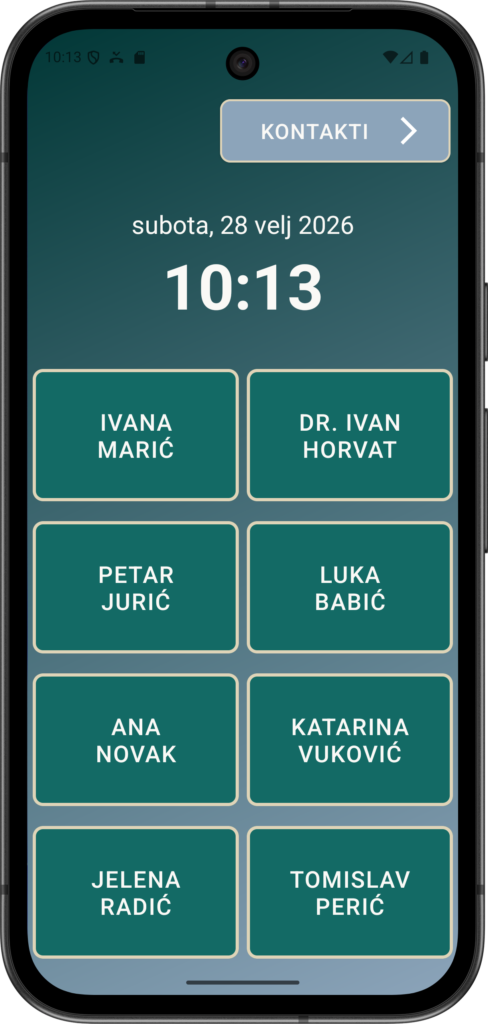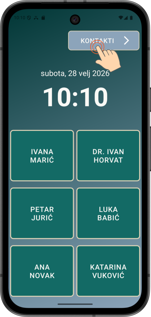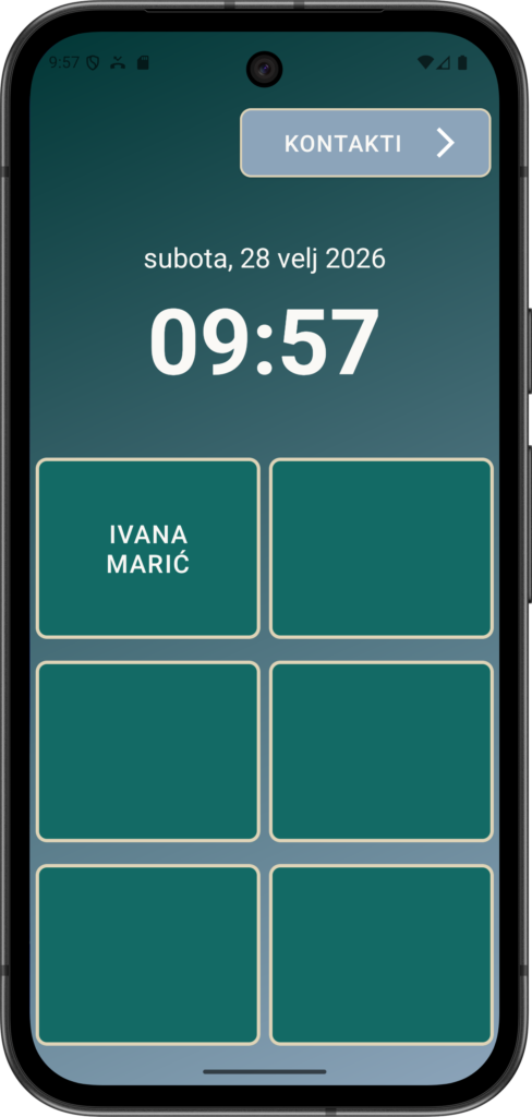 • Brza biranja još nisu postavljena (samo zeleni okviri) – zato pritisnite gumb ‘KONTAKTI’ u gornjem desnom kutu glavnog zaslona