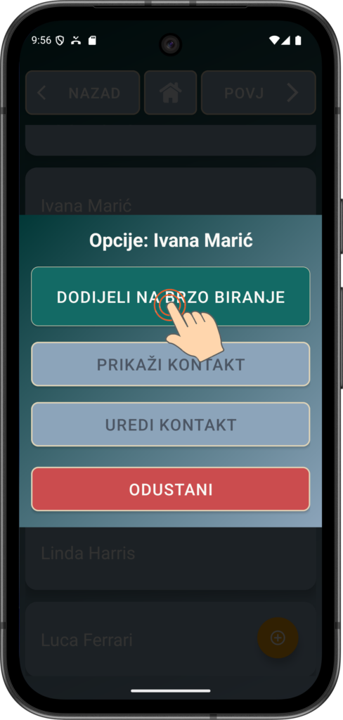 Napomena: Ako je prikazano “Ukloni iz brzog biranja”, tada je kontakt već dodijeljen.