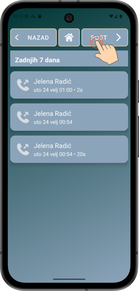 Sa stranice Call History kliknite POST za odlazak na stranicu Postavke