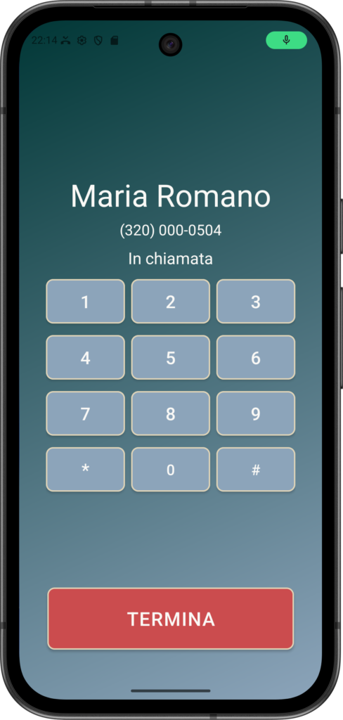 Quando Show DTMF è abilitato, vengono visualizzati pulsanti di grandi dimensioni e chiaramente etichettati durante una chiamata, consentendo all’utente o a un caregiver di interagire con sistemi automatizzati senza terminare le app di chiamata o di switching.