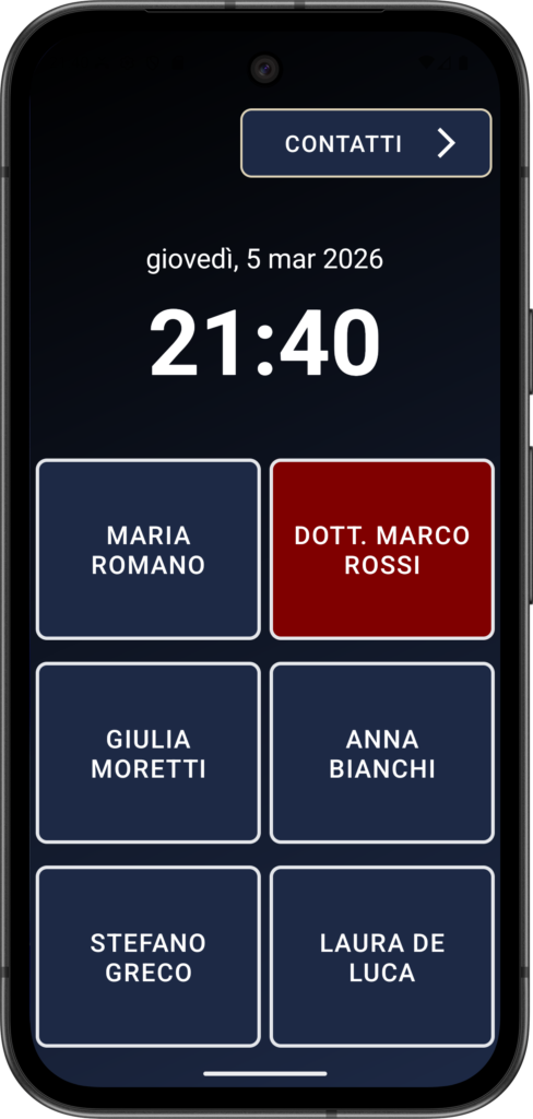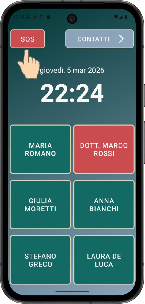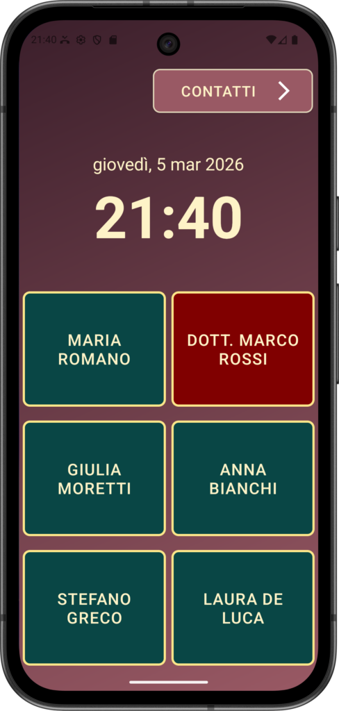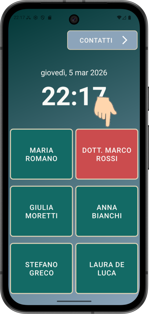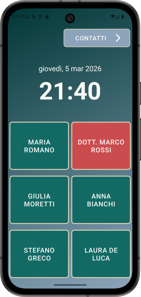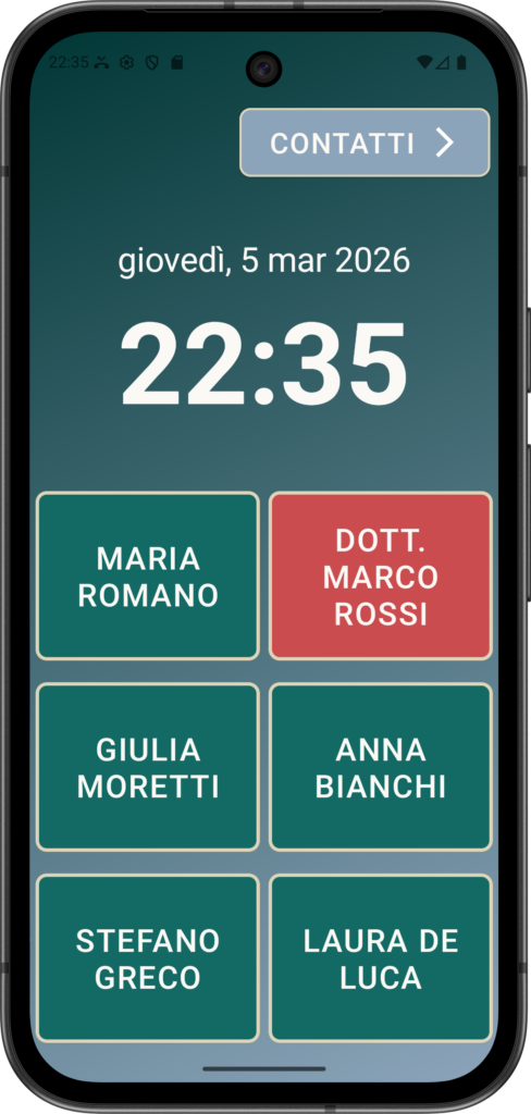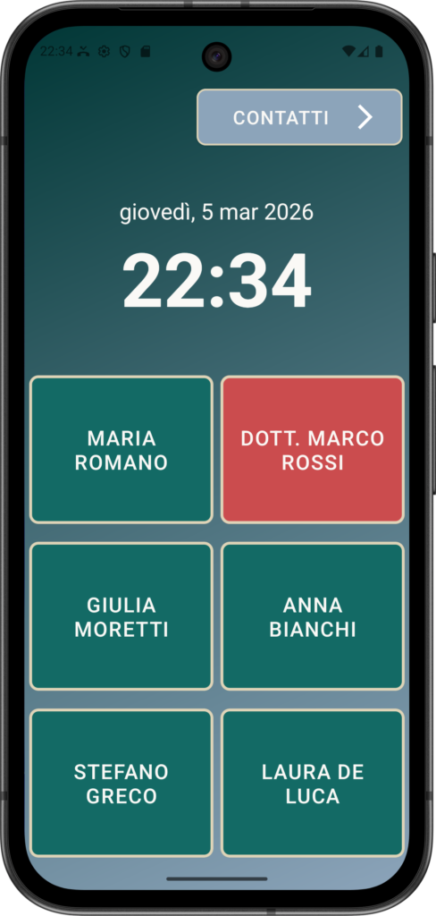Presentando un piccolo numero di contatti familiari come pulsanti grandi e chiaramente etichettati, l’app rimuove la necessità di cercare tra elenchi di contatti, ricordare i numeri di telefono o navigare in menu complessi.