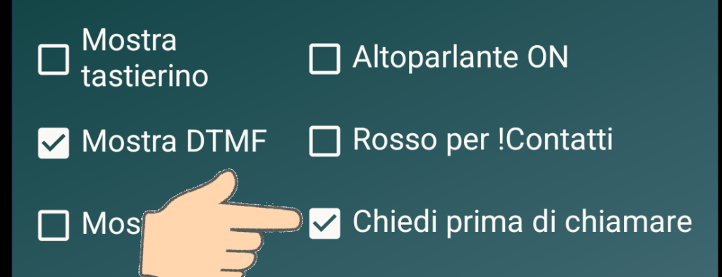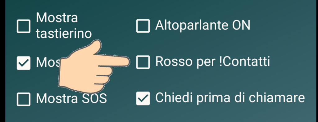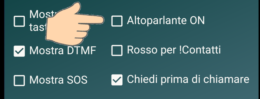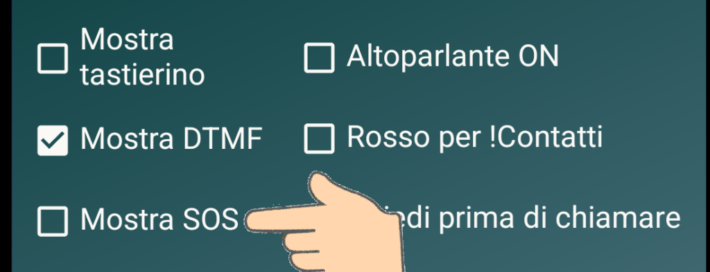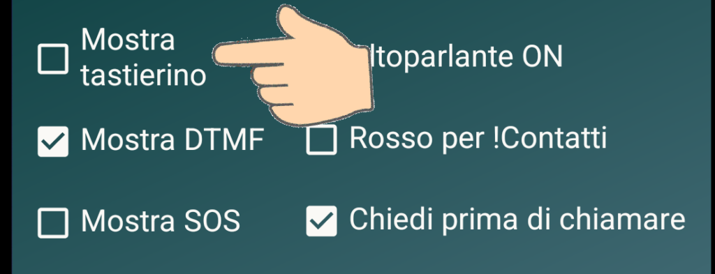 L’opzione Mostra diaposta’ attiva la possibilità per l’utente di chiamare i numeri che non sono registrati come contatti nell’applicazione Contatti.