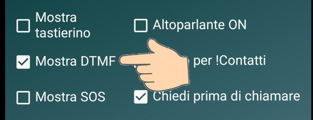 L’opzione Mostra DTMF in Elder Dialler controlla se la tastiera su schermo è disponibile durante una chiamata attiva per inviare toni DTMF (Dual-Tone Multi-Frequency).