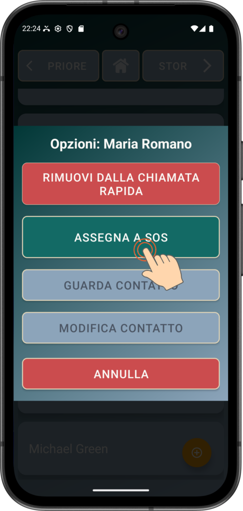 Fare clic su “Assegna a SOS” per assegnare il contatto alla sequenza di chiamata SOS.
