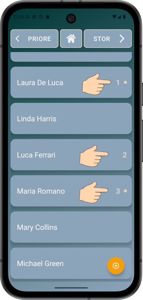 In questo esempio, Laura de Luca è il primo contatto SOS, Luca Ferrari è seconda e Maria è terza.