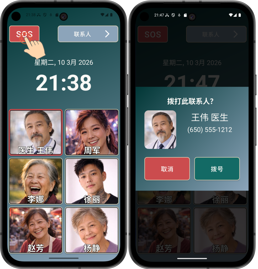 联系人图片可帮助用户无需依赖阅读或记忆即可立即识别对方,这对视力下降或存在认知障碍的用户尤为重要。看到熟悉的面孔能够减少犹豫,并降低误拨电话的风险。