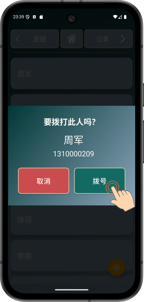 - 在弹出的确认窗口中 -> 选择 拨号。