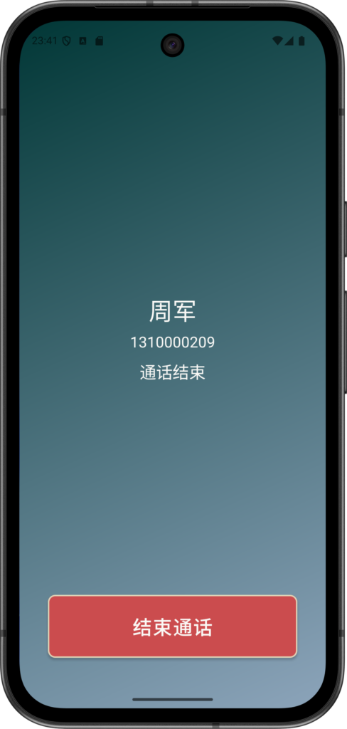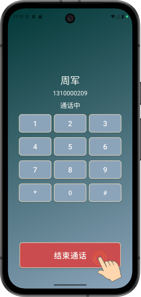 与 周军 通话结束后,电话挂断。