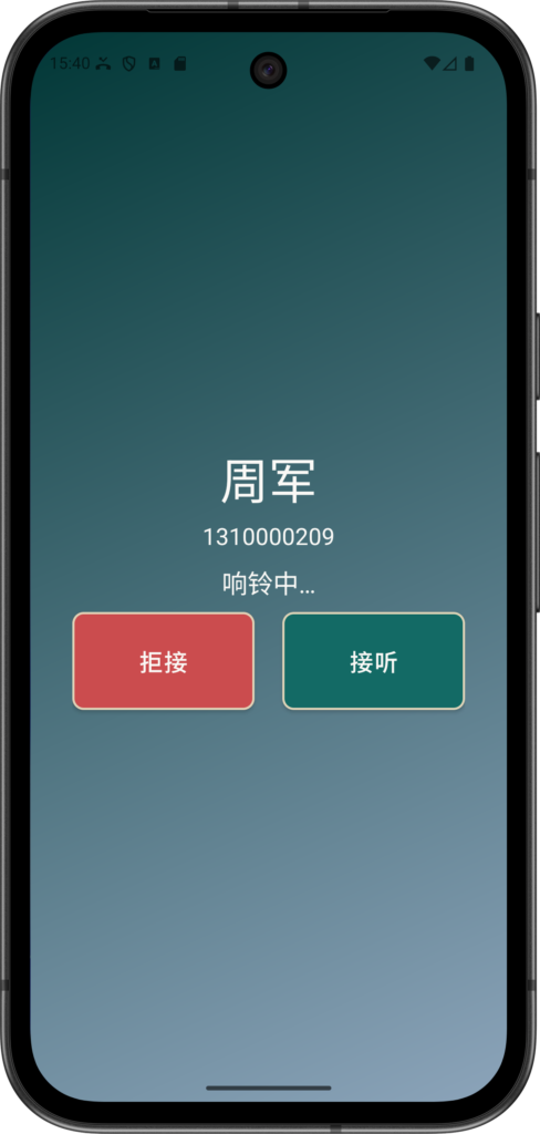 拒接 —— 不接听,忽略 周军 的来电。