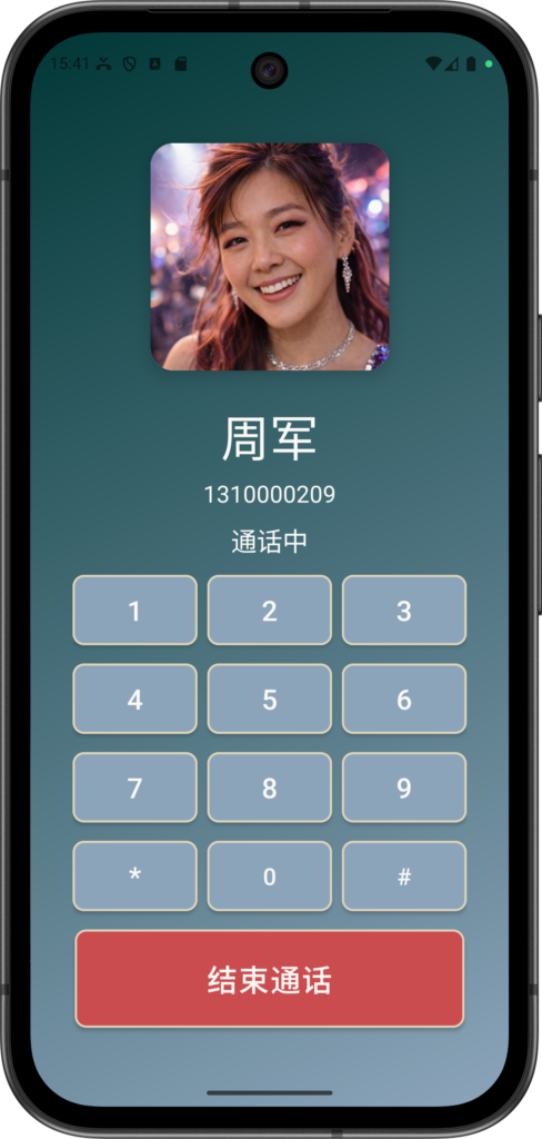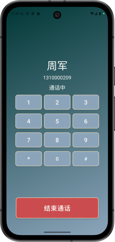 如果您点击 接听,则会显示上述界面(带 双音多频 键盘)。