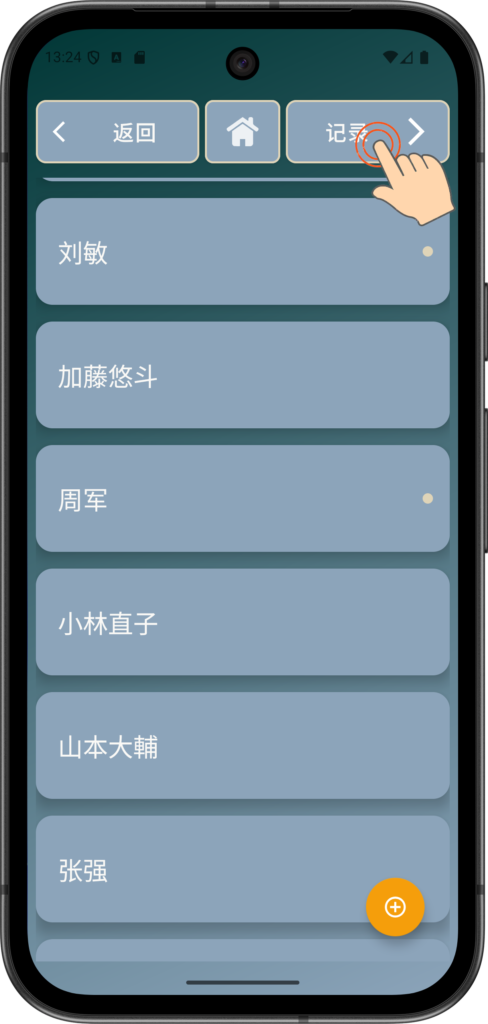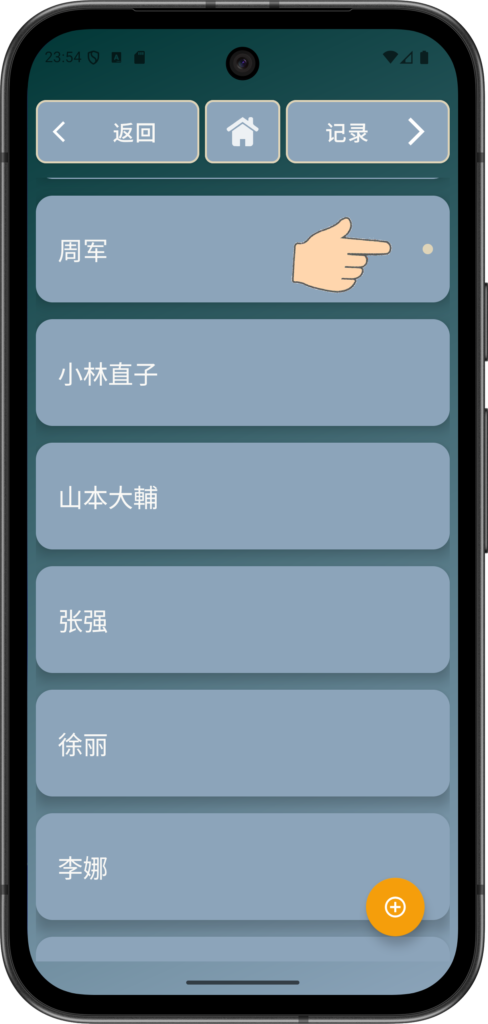 注意:您的联系人列表会有所不同。如果您没有联系人,请使用黄色的 + 按钮添加一个。