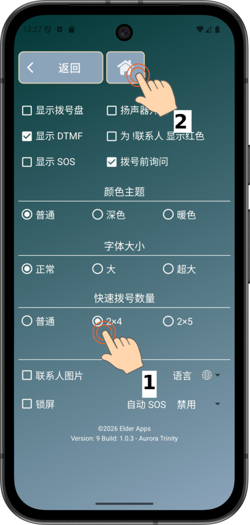 将 SpeedDials 更改为 2×4(8 个)或 2×5(10 个)。