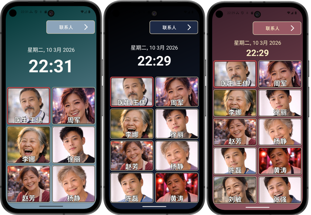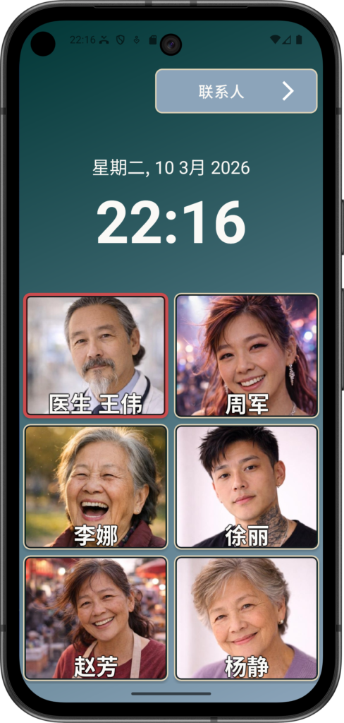 本网站上显示以及在 Elder Dialler 应用中展示的所有姓名、联系方式和图像均为完全虚构,仅用于演示和说明目的。如与任何真实人物(无论在世或已故)相似,纯属巧合。任何内容均无意代表、模拟或复制任何真实个人。