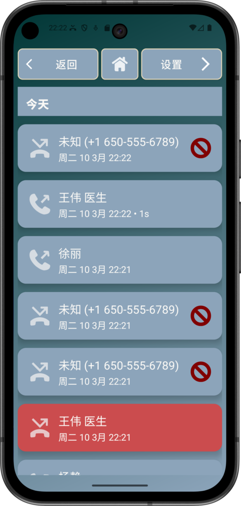 来电、去电和未接来电以大字体和易于理解的图标显示,让您始终清楚是谁来电以及何时来电。