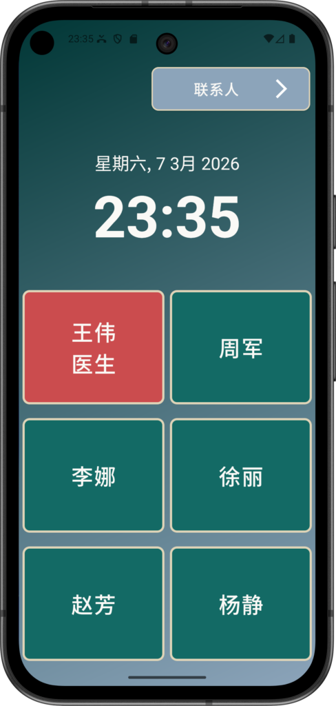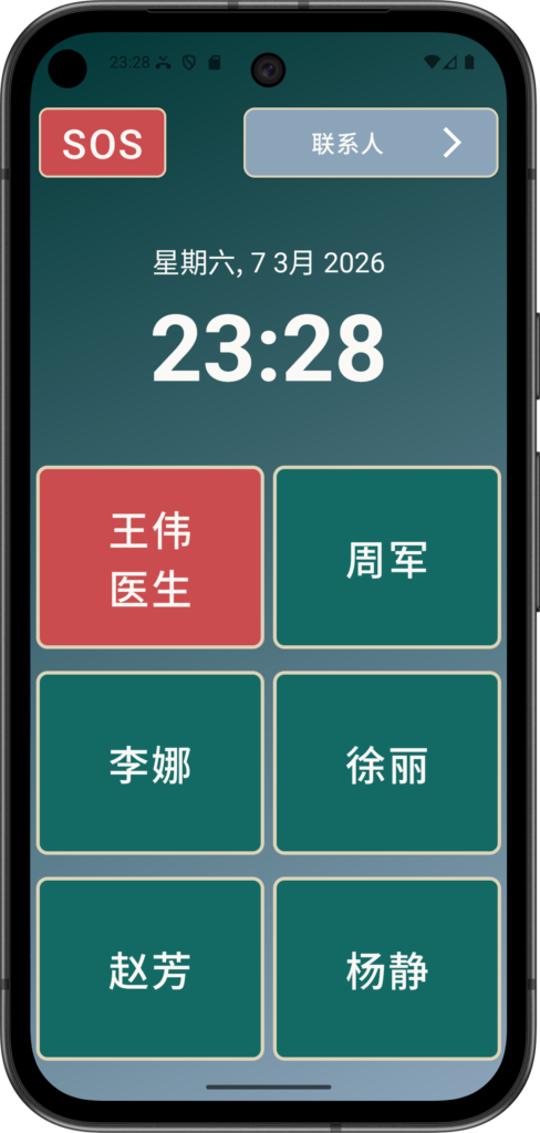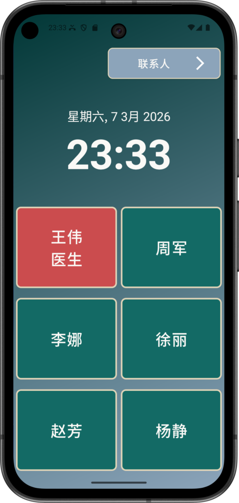 通过将少量熟悉的联系人呈现为大型、标记清晰的按钮,该应用程序无需搜索联系人列表、记住电话号码或浏览复杂的菜单。