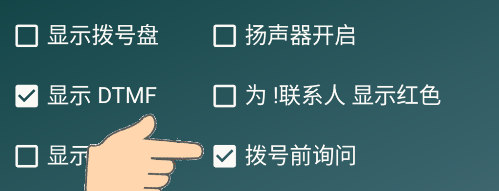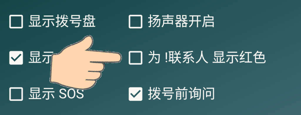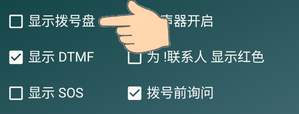 的‘ 显示拨号盘‘ 选项启用了用户拨打未在联系人应用程序中注册为联系人的号码的能力。