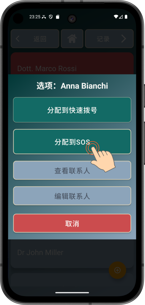 在这个例子中,Anna Bianchi 是第一个 SOS 联系人,Anne Walker 是第二个,David 是第三个。