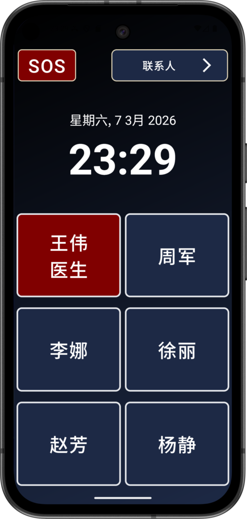旨在帮助老年用户在需要援助或紧急帮助时快速、自信地确定要打电话给谁。